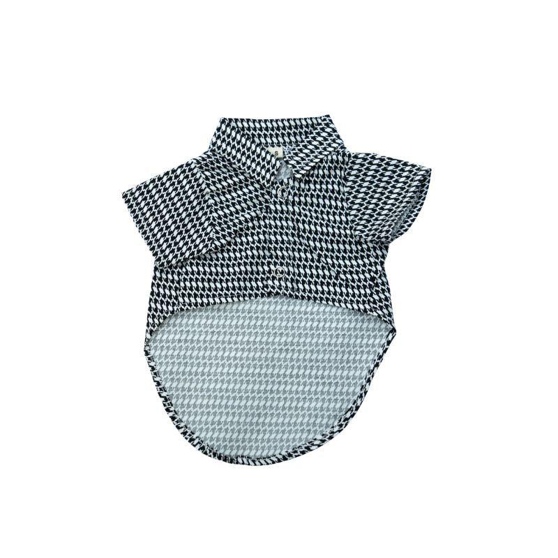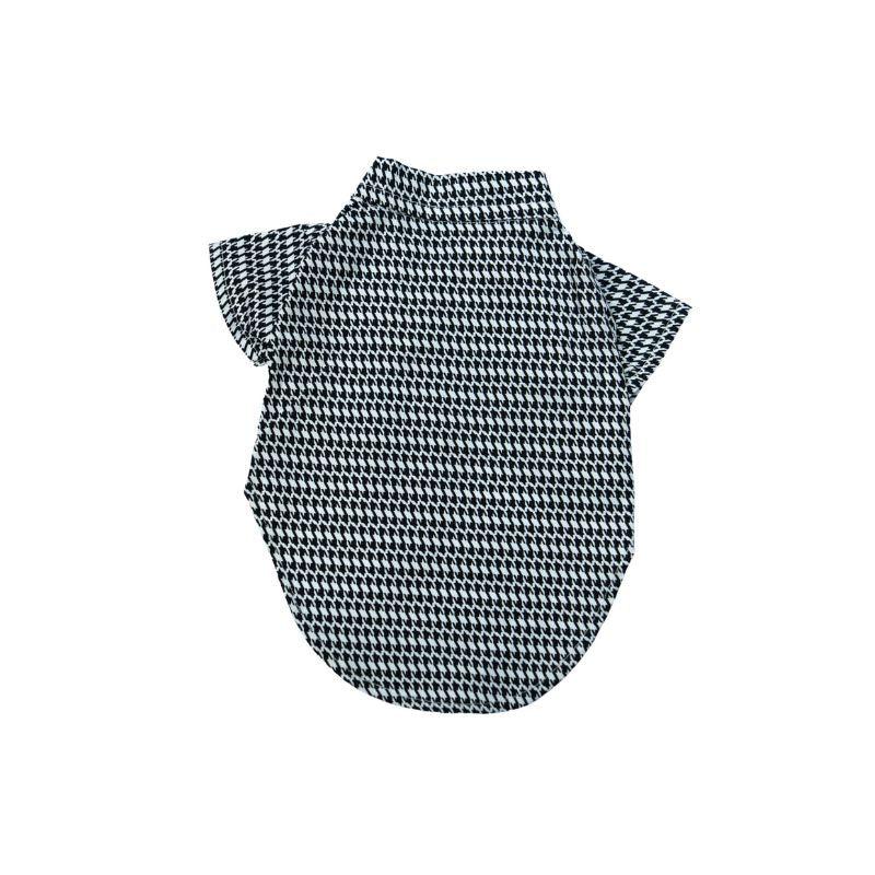 Add a chic touch to your pets wardrobe with our Black and White Houndstooth Two Button Shirt, made from 100% cotton for style, comfort and long-lasting quality.