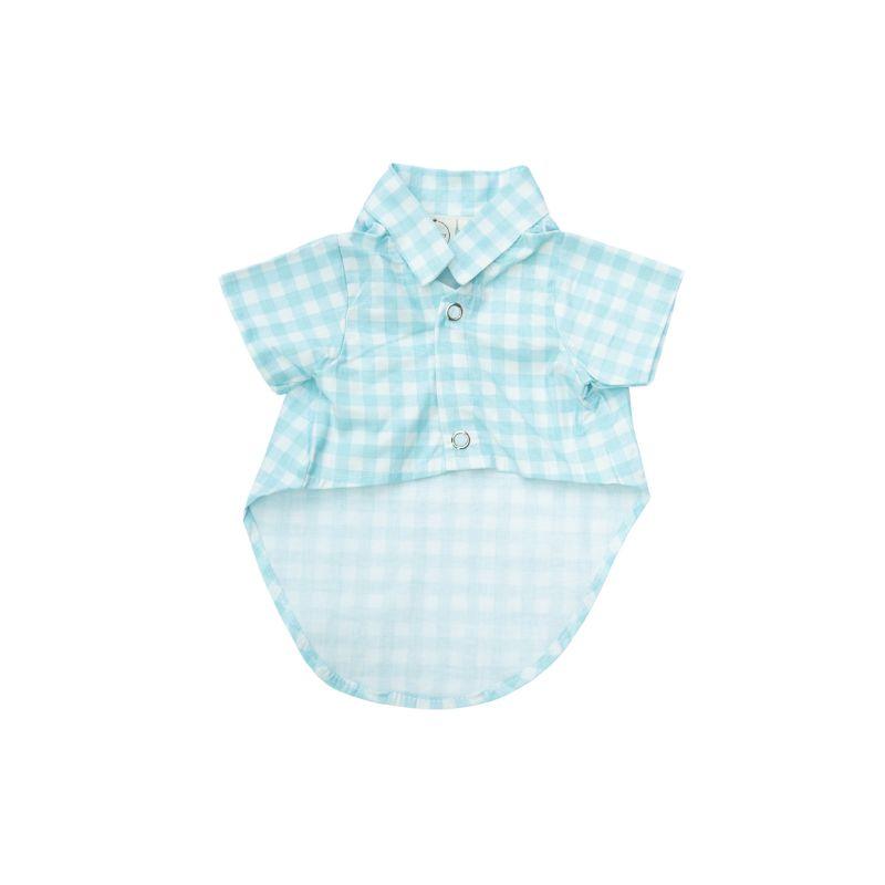 Add a chic touch to your pets wardrobe with our Blue Gingham Two Button Shirt, made from 100% cotton for style, comfort and long-lasting quality.